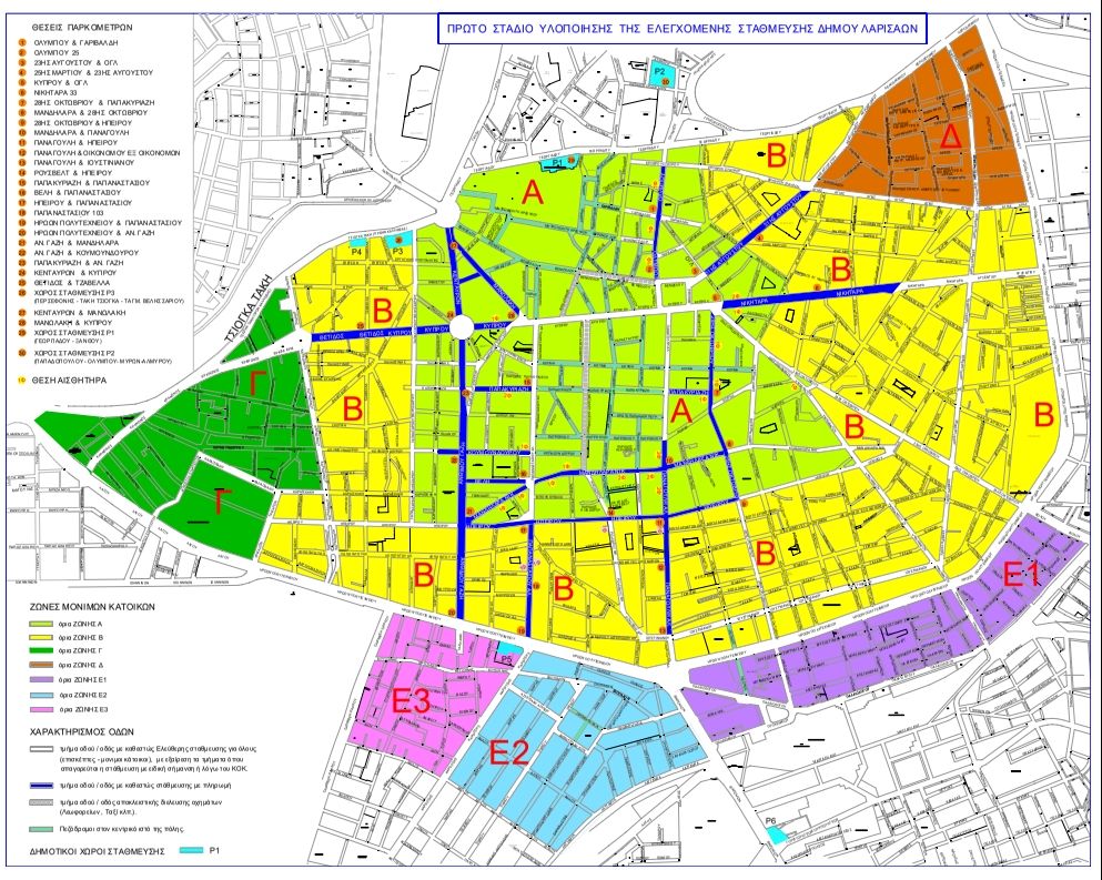 Το Σ.Ε.Σ. θα τεθεί σε εφαρμογή στις 2 Ιουνίου 2025, σε πρώτη φάση σε συνολικά 17 οδούς (μπλε δίκτυο), στο κέντρο της Λάρισας. Ταυτόχρονα, ενεργοποιούνται οι θέσεις μονίμων κατοίκων, στις αντίστοιχες ζώνες.