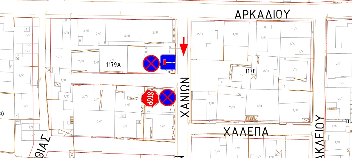 • Απαγόρευση στάσης και στάθμευσης στην πάροδο της οδού Χανίων (Ο.Τ.1179Α).