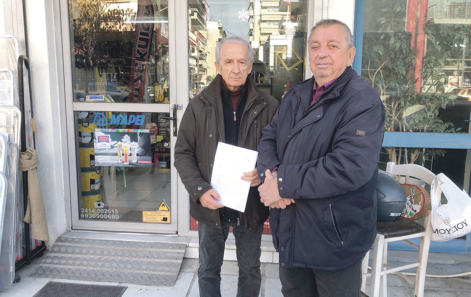 «Χάσαμε τον ύπνο μας» δηλώνουν στην «Ε» ο κ. Αναστάσιος Κουτζεκλίδης και ο κ. Θανάσης Κουκόσιας, κρατώντας στα χέρια τους την αγωγή από το ΤΕΘΑ