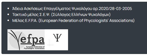 Έχει ολοκληρώσει το πρόγραμμα Συμπληρωματικής εκπαίδευσης εξ αποστάσεως του Εθνικού Καποδιστριακού Πανεπιστημίου Αθηνών «Κρίσεις Πανικού: θεωρητικό πλαίσιο και πρακτική διαχείριση».